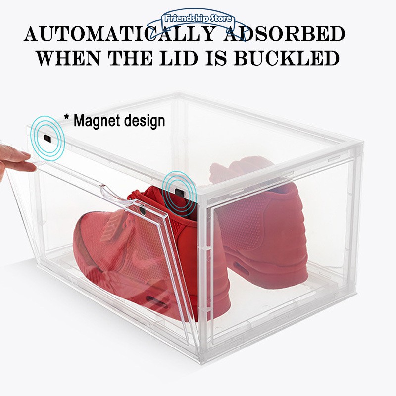 Side Open Magnetic Door Abs Resin Sneakers Storage Box Transparent